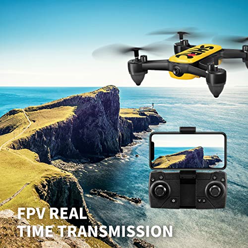 FOLDABLE DRONE with 120° WIDE-ANGLE 1080P HD CAMERA The drone with camera for adults is provided with a 120° wide-angle 1080P HD camera, which captures high definition video and clear aerial photos. The Wi-Fi real-time transmission FPV system can connect in your phone further than 164 feet with the camera drone. Even staying at home, you’ll be able to still take a panoramic view for your phone over the entire city and explore the dynamic changing and atypical momen.